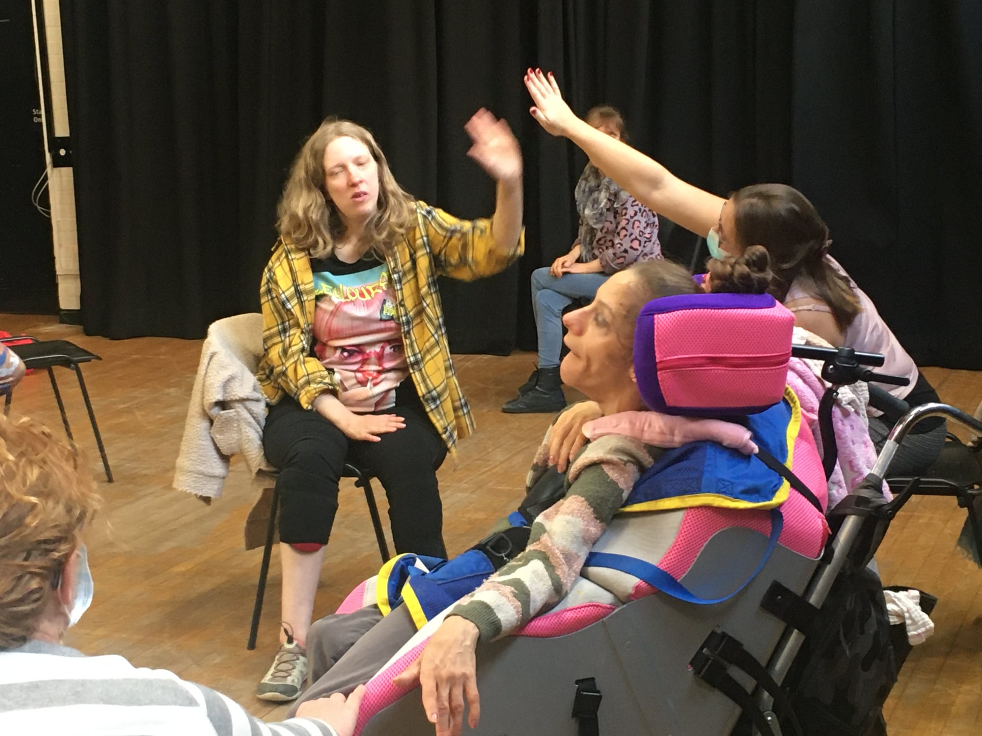 We aim for company class to be an inclusive, focused, creative, challenging and enjoyable space where we can develop and grow as a company and as dancers. We are open to experienced dancers who are new to the company in particular experienced dancers with physical disabilities to come and try out the class with us.
