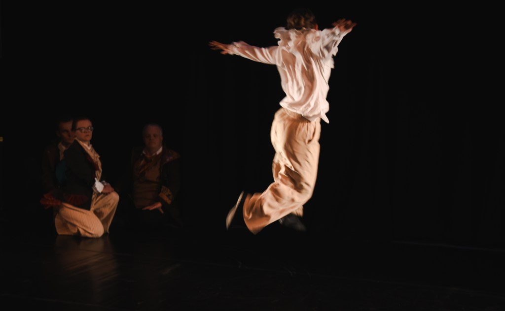 The packed FEAST festival audience who were enjoying a sublime selection of poetry, music, performance art and physical comedy were entranced by the dance piece and the dancers. The audience were there with the dancers for every swing, turn, leap, touch and thanked them with rapturous applause at the end of the piece.